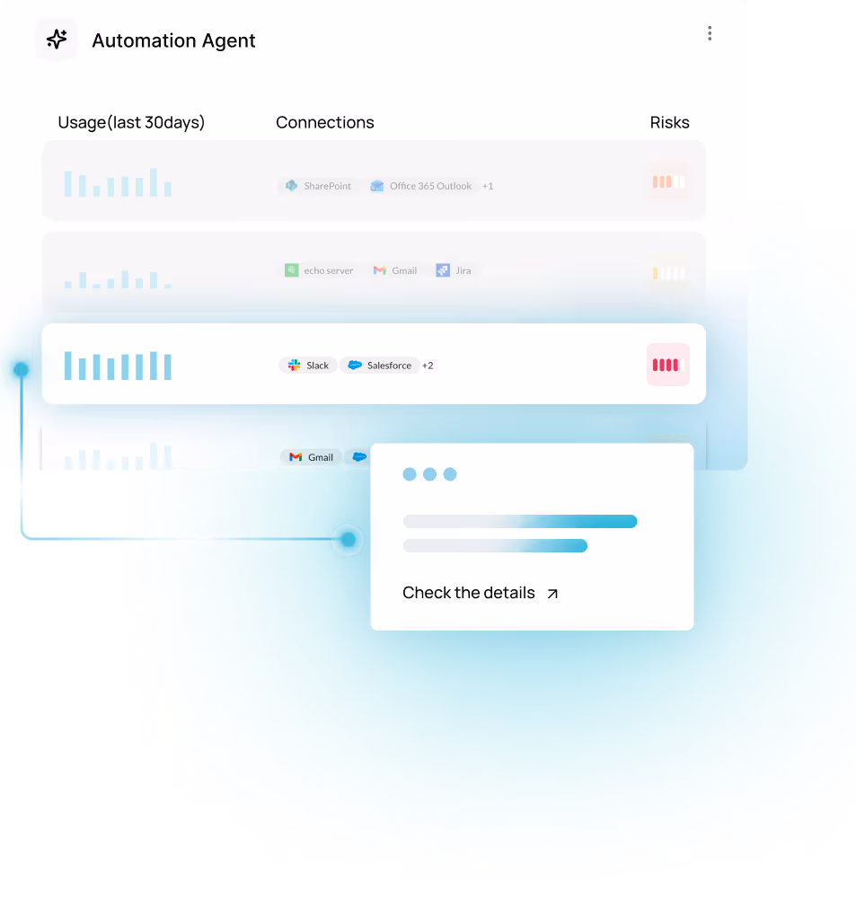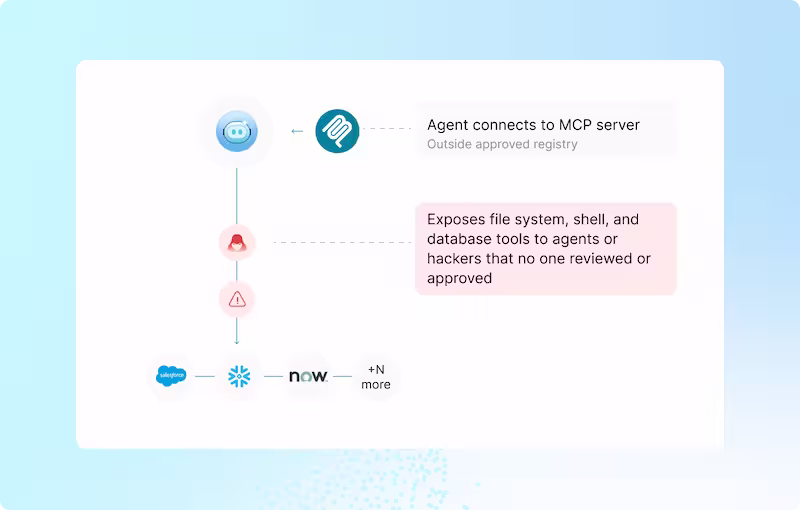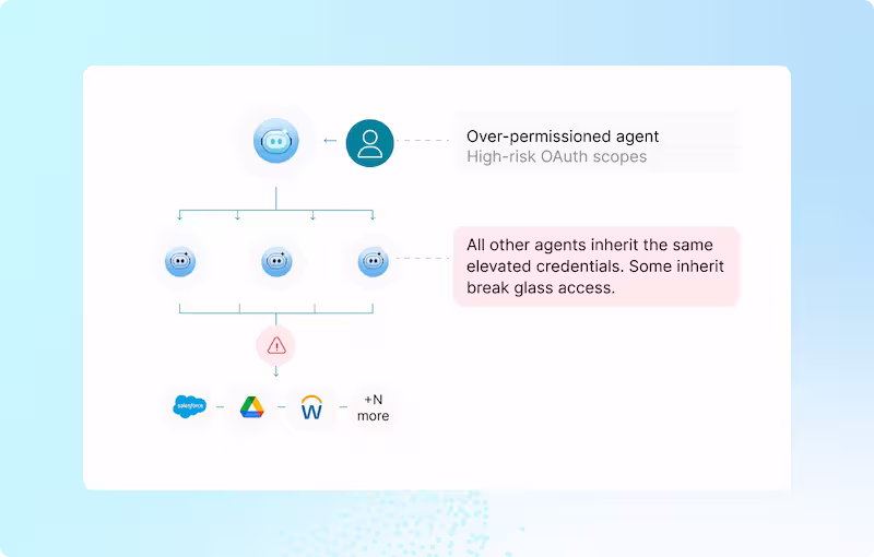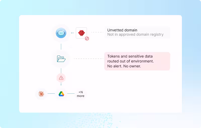 Get the complete picture of tools invoked, inherited permissions, and data moved across every agent in your environment. And the controls to act on it at runtime.