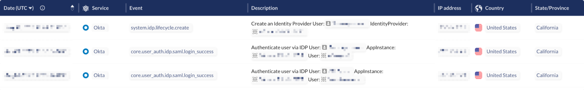 Notes: If the attacker utilizes a pre-defined IdP, you will observe the SAML login event when a SAML IdP is employed.