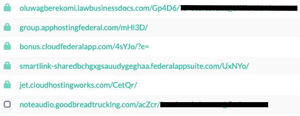 Since the campaign began, we’ve identified over 200 domains and 400 unique URLs tied to it. These domains often mimic industries like law, government, and construction. Most are short-lived, existing only for a few days, making URL-based blocking ineffective.