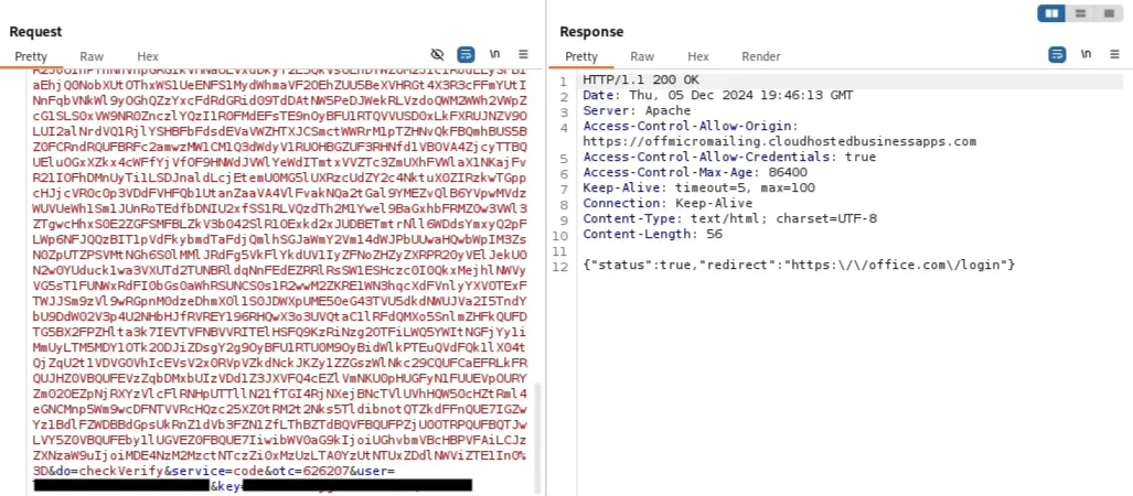 - After MFA completion, the information is passed back to the C2 server. If the session is validated, a redirect is sent to the legitimate Microsoft365 login page, completing the phishing attack.