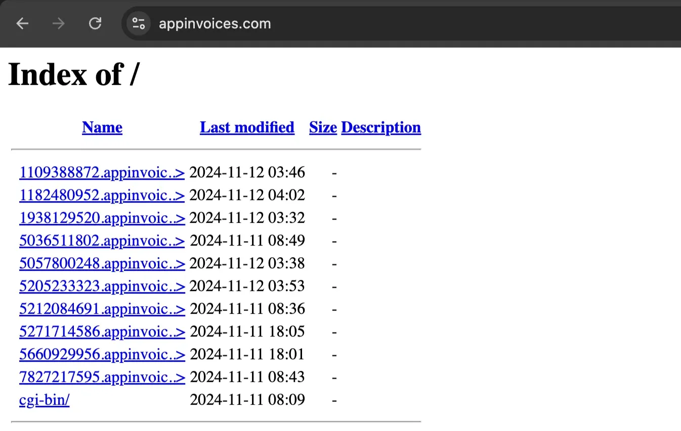 Exploring some of the C2 URLs further may reveal a directory containing a number of subdomains, each one likely a receiving point for the C2 server.