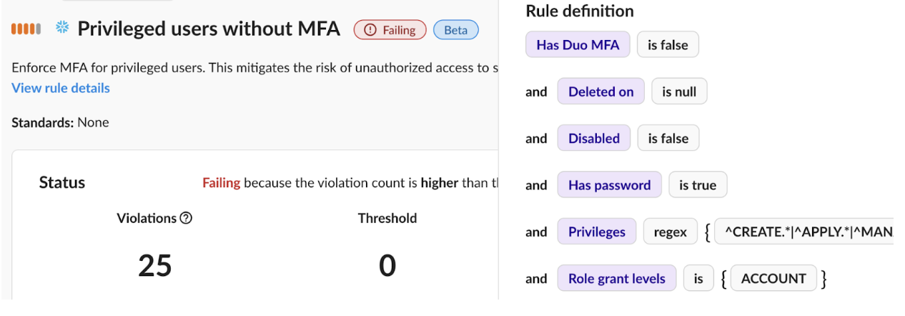 The Obsidian platform quickly and continuously surfaces all apps in your environment and measures how they perform against the internal or external compliance standards you follow. Monitoring your posture with Obsidian gives security teams the ability to rapidly assess app configurations (e.g. enforcing MFA for privileged users) and remediate any risk.