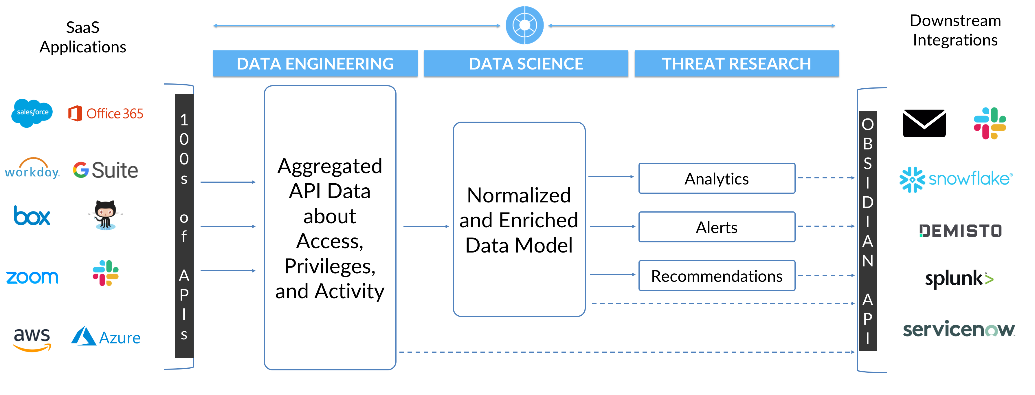 Obsidian goes beyond SSPM, enabling security teams to continuously monitor user activity, protect against data breaches, and detect and respond to insider threats and account compromise.