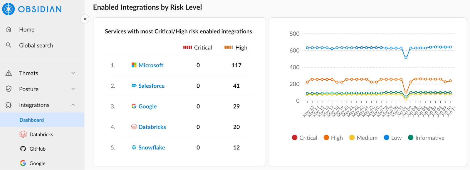 With Obsidian, security teams are able to understand data flows between apps to know how data is accessed and keep it secure. Partnering with platforms like Snowflake and Databricks ensures your data is properly controlled across its journey from application to application.