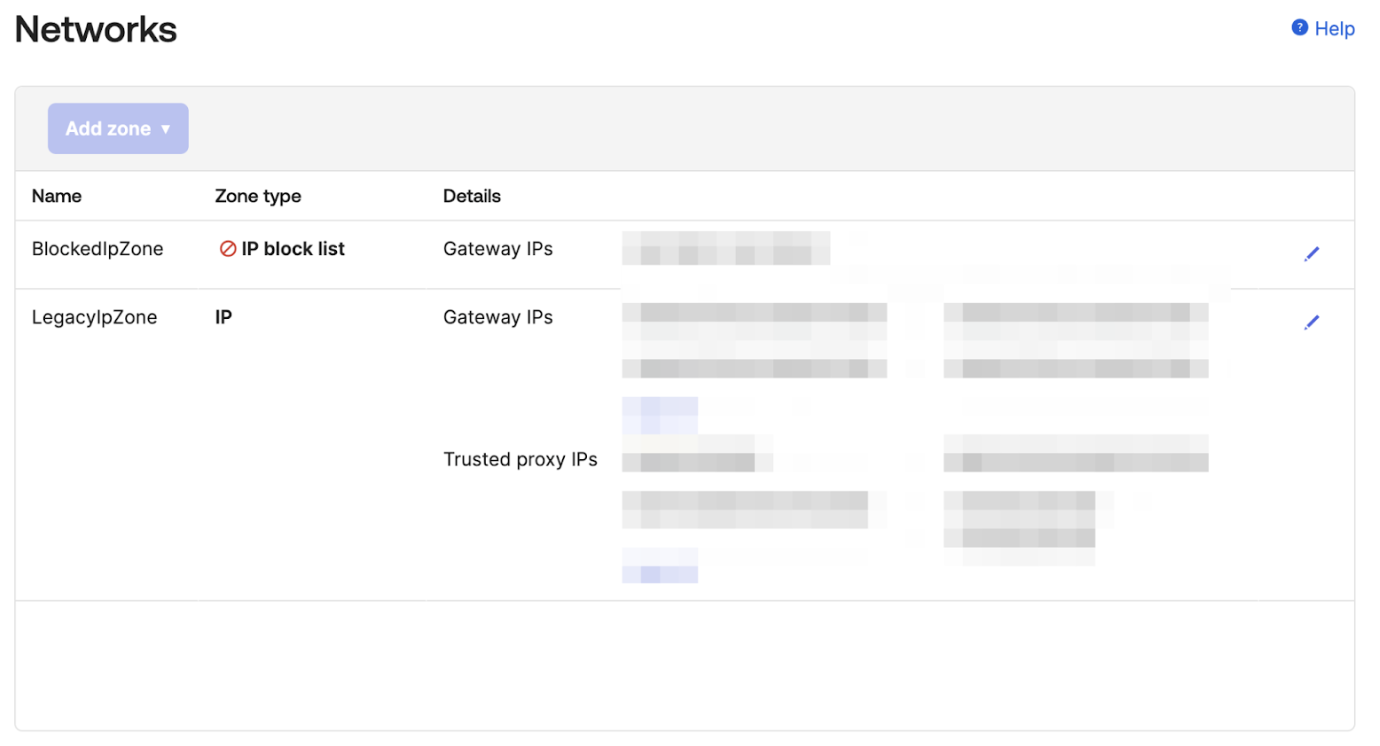 - Ensure that trusted proxy/application IPs are consistently maintained within Okta’s IP Zone setting, rather than handling them in an ad-hoc manner.