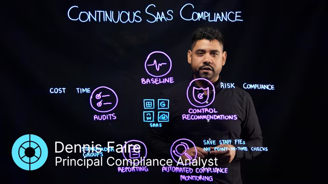 In this lightboard video, Obsidian Principal Compliance Analyst Dennis Faire provides a new way of thinking about SaaS compliance as a continuous process. Manual audit preparation is difficult with dozens of applications, thousands of settings, and extensive required expertise. By automating the process of mapping SaaS controls to compliance standards and monitoring their status in real-time, you can ensure adherence with any standards while cutting time and costs. Learn more about continuous SaaS compliance in the lightboard.