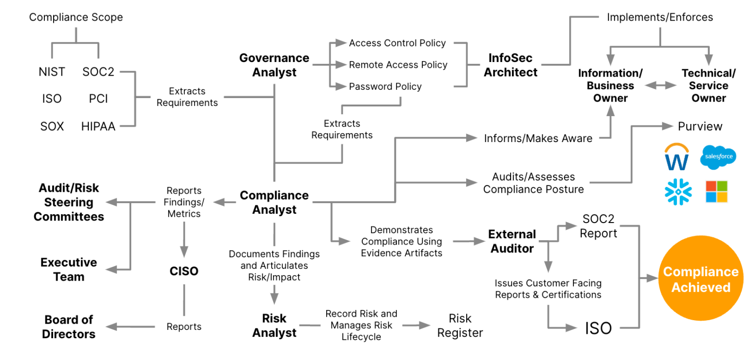 Often today, compliance workflows have many layers drawing from employees in different departments. Here is one example: