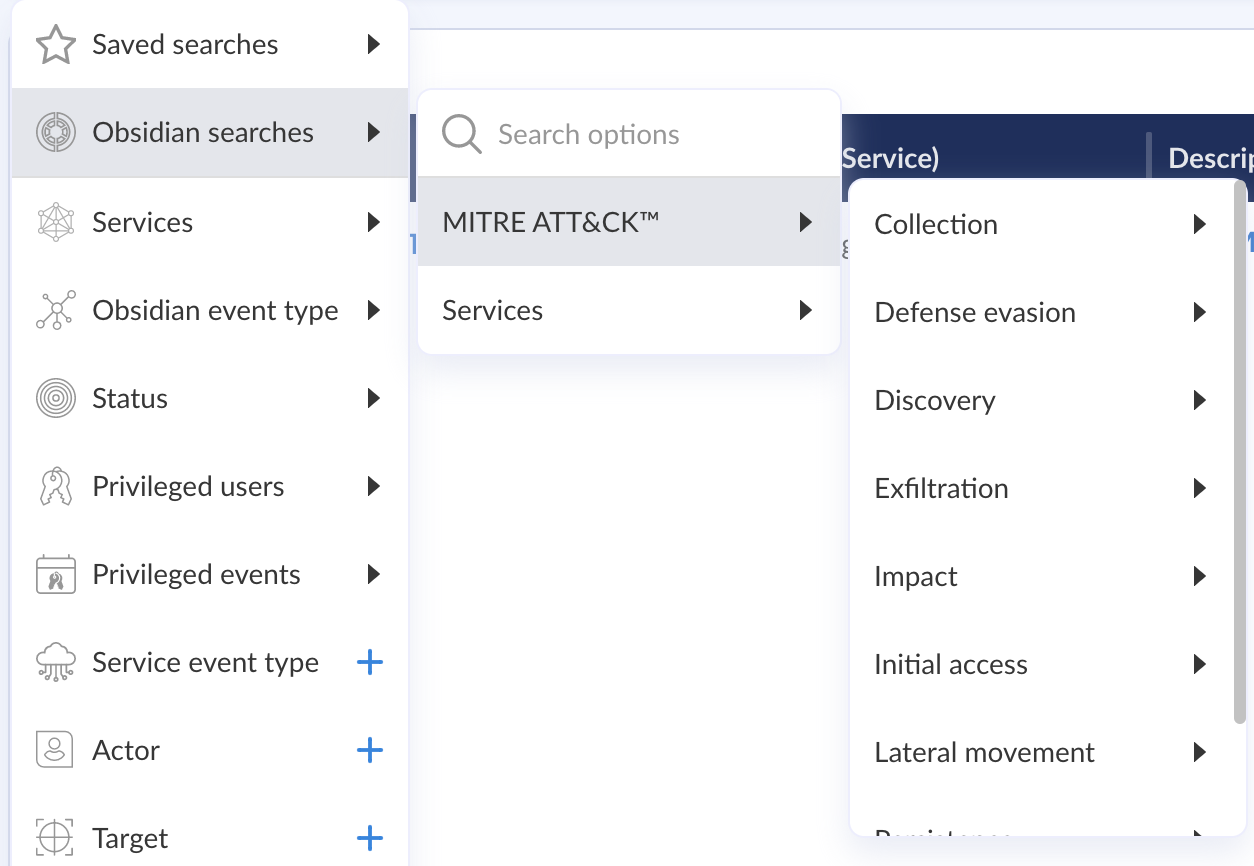 Use the library of 100+ helpful built-in searches that Obsidian provides to identify signs of trouble or to simply better understand what is happening in the applications . Built-in searches mapped to the MITRE ATT&CK framework are created by the Obsidian security research team to help security teams get up and running quickly. They are updated on an ongoing basis as our team discovers new queries that are useful for detection and response. You can also clone the search query and customize it according to your needs.