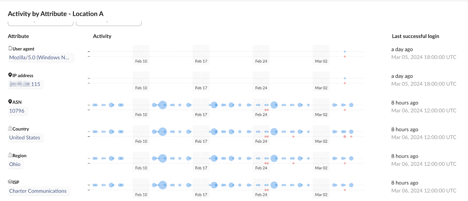 In one instance, the residential ISP and its IP geolocation matched the user’s typical behavior. This was evident in the user’s high frequency of daily activity, which correlated closely with those specific attributes.