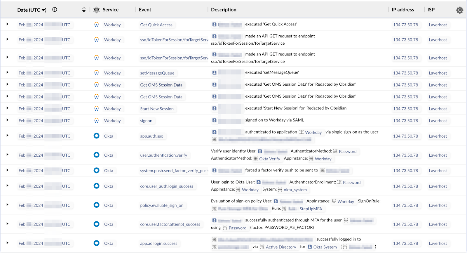 - Check your audit logs in Obsidian’s Activity Timeline or your SIEM for any Indicators of Compromise (IoCs) or identity risks.