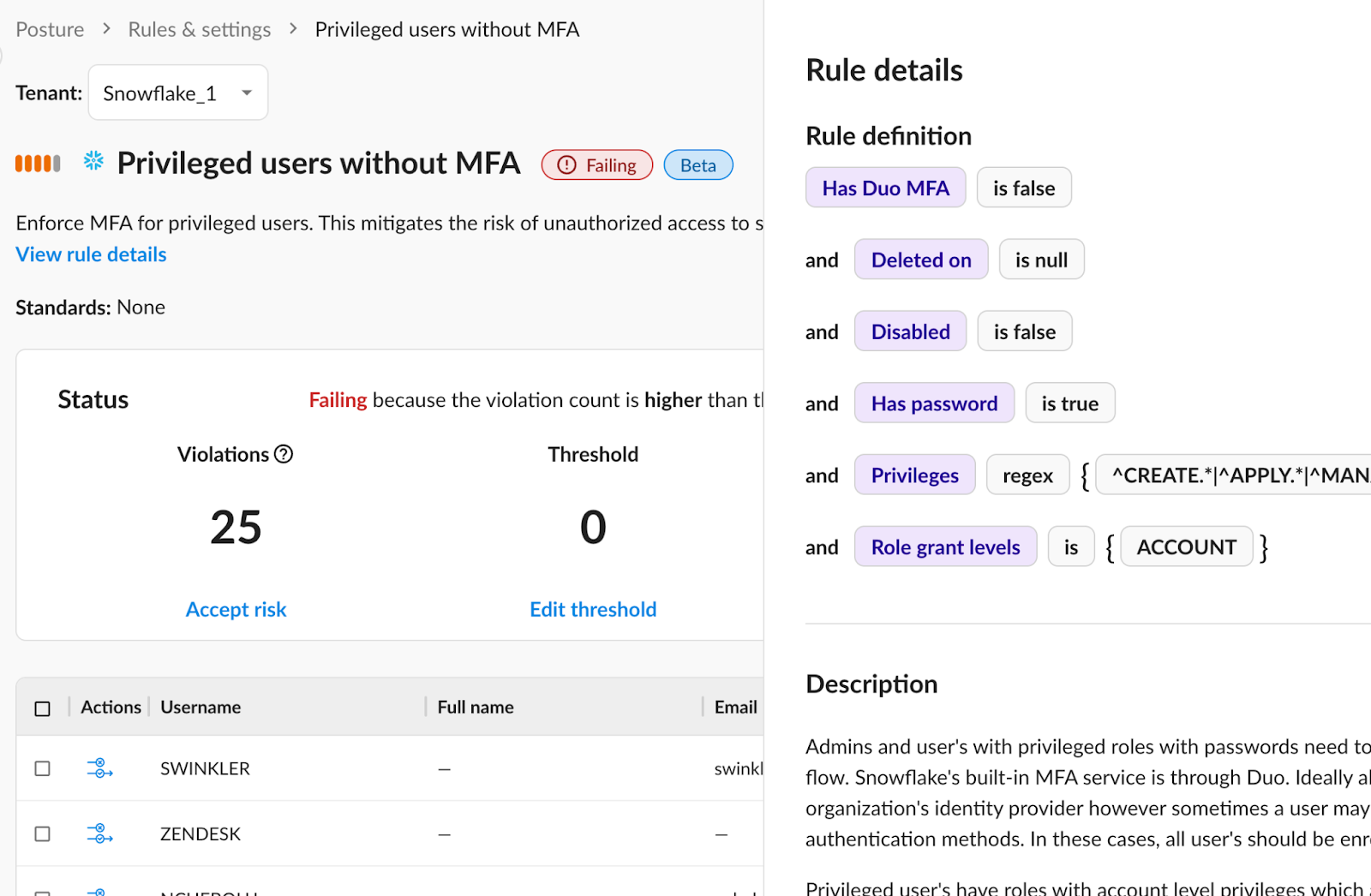 Additionally, organizations must also identify and manage connected applications that may be using less secure authentication methods to access data from Snowflake environments.