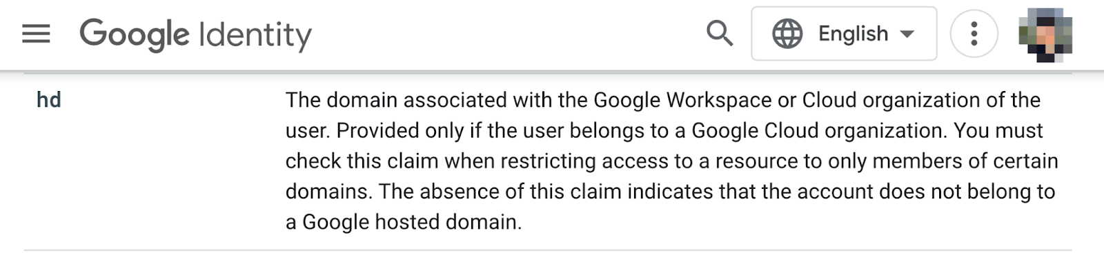 To prevent external third-party users from infiltrating organizational workspaces, identity service providers should support domain-related claims in their ID Tokens. This helps applications differentiate between personal and organizational users, similar to the hd claim supported by Google Identity services.