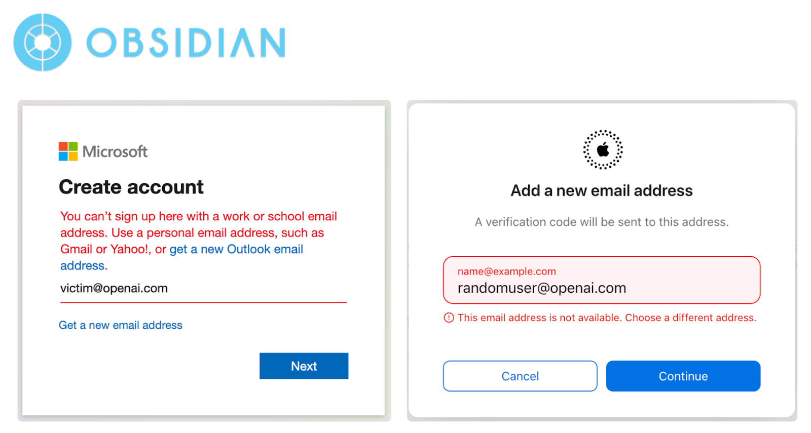 Many enterprises underestimate how easily organizational email addresses can be registered with almost any identity provider. For example, an email address managed on Google Workspace can still be used to register with other identity providers like Apple and Microsoft.