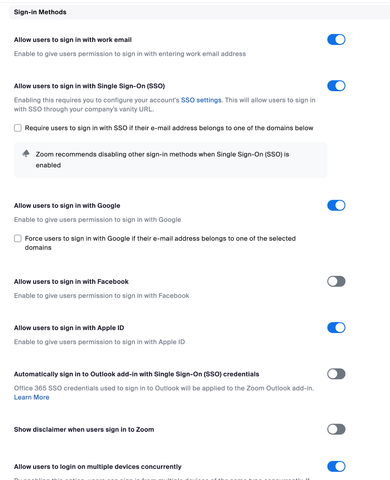Setting up a password for an account can provide additional security similar to enabling 2FA. For instance, if you sign up for a Zoom account using an SSO option like Google, your account will not have a password by default. Setting up a password ensures that many operations, such as linking with a third-party account or enabling 2FA, require extra verification.