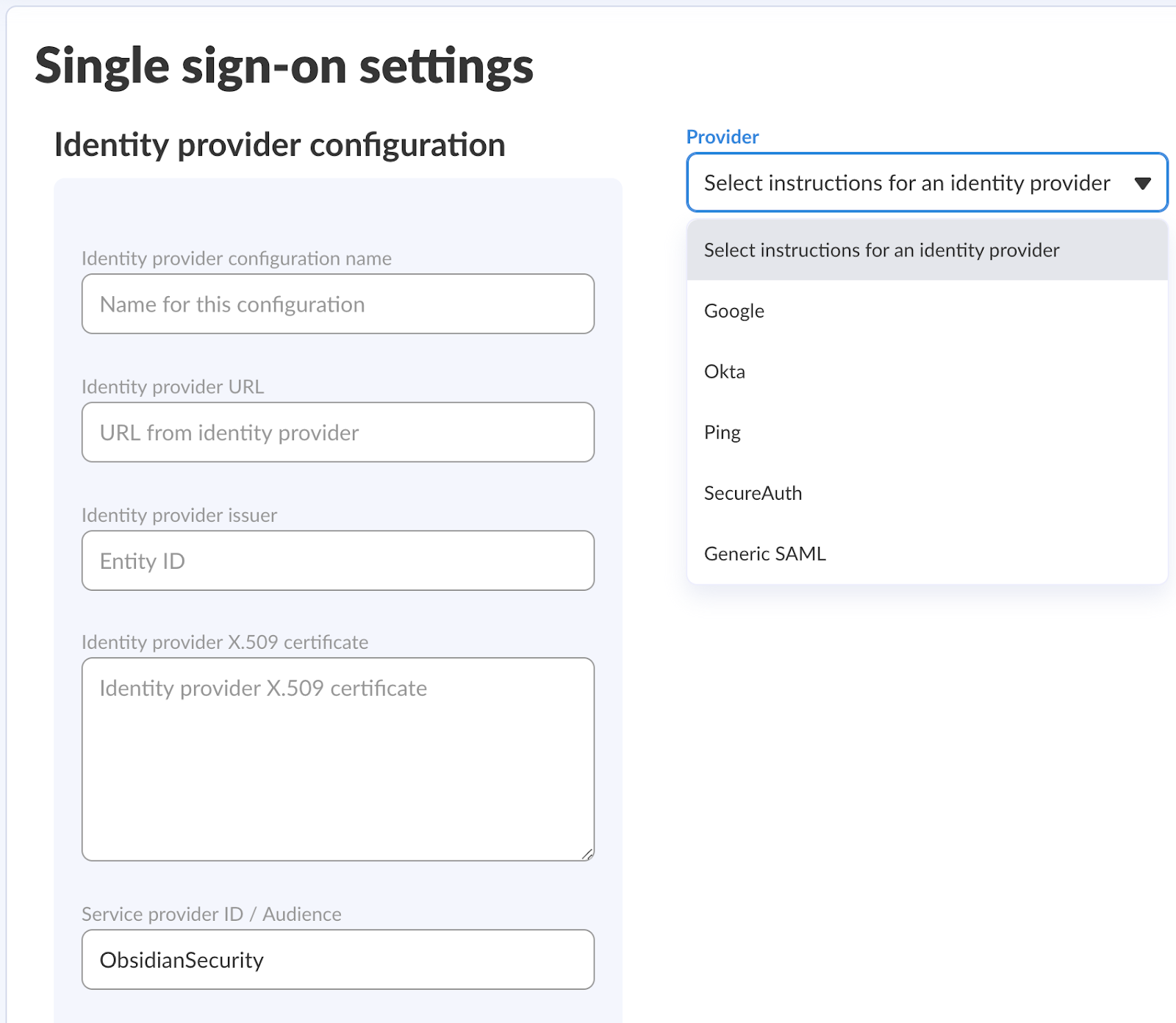 Obsidian now joins the ranks of SaaS applications that support single sign-on. You can configure your Obsidian account to use any identity provider that supports Security Assertion Markup Language (SAML) 2.0. We provide detailed instructions for how to do this with several leading identity providers – Okta, Google, Ping and SecureAuth. We also cover onboarding instructions for how to configure SSO between Obsidian and a generic identity provider. To set up SSO, you will need to have administrator privileges for your identity provider.
