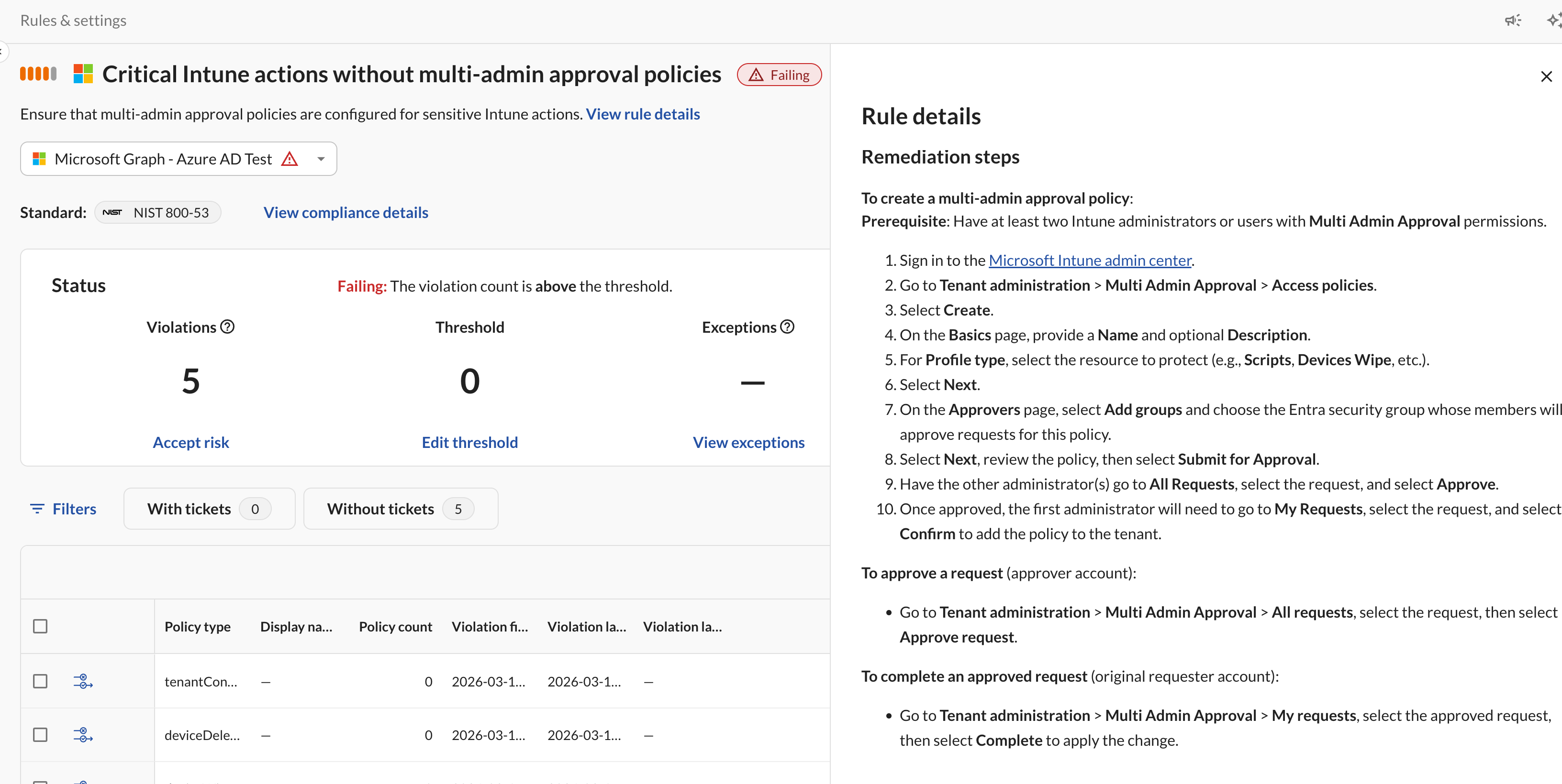 Obsidian detects when Intune is misconfigured to allow single-admin approval for high-impact actions, before attackers exploit it. Enforcing a second approver before any destructive action closes a door attackers actively target.