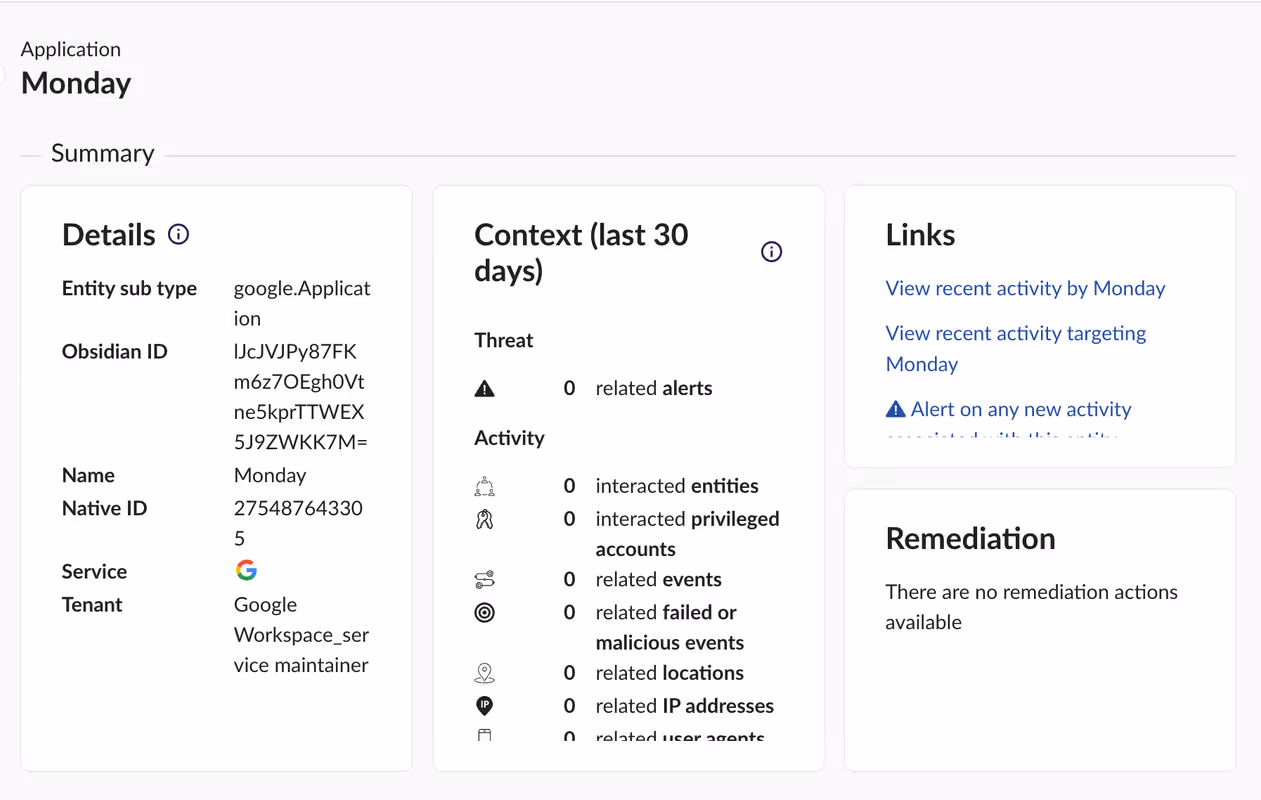 Monday.com empowers collaboration, but also introduces risks from excessive access and third-party code. Obsidian’s SaaS-native security stack continuously monitors token usage, enforces secure configurations, and delivers identity-aware detection to help organizations mitigate modern SaaS threats.