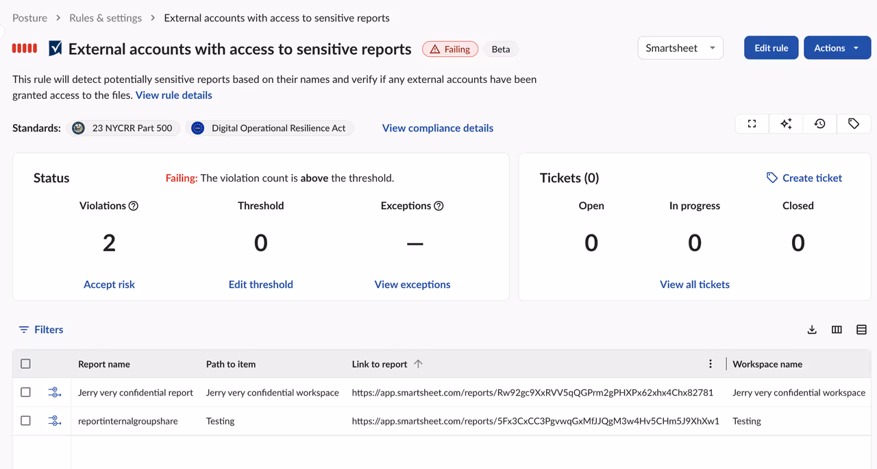 Smartsheet empowers collaboration, but also introduces risks from excessive access and third-party code. Obsidian’s SaaS-native security stack continuously monitors token usage, enforces secure configurations, and delivers identity-aware detection to help organizations mitigate modern SaaS threats.